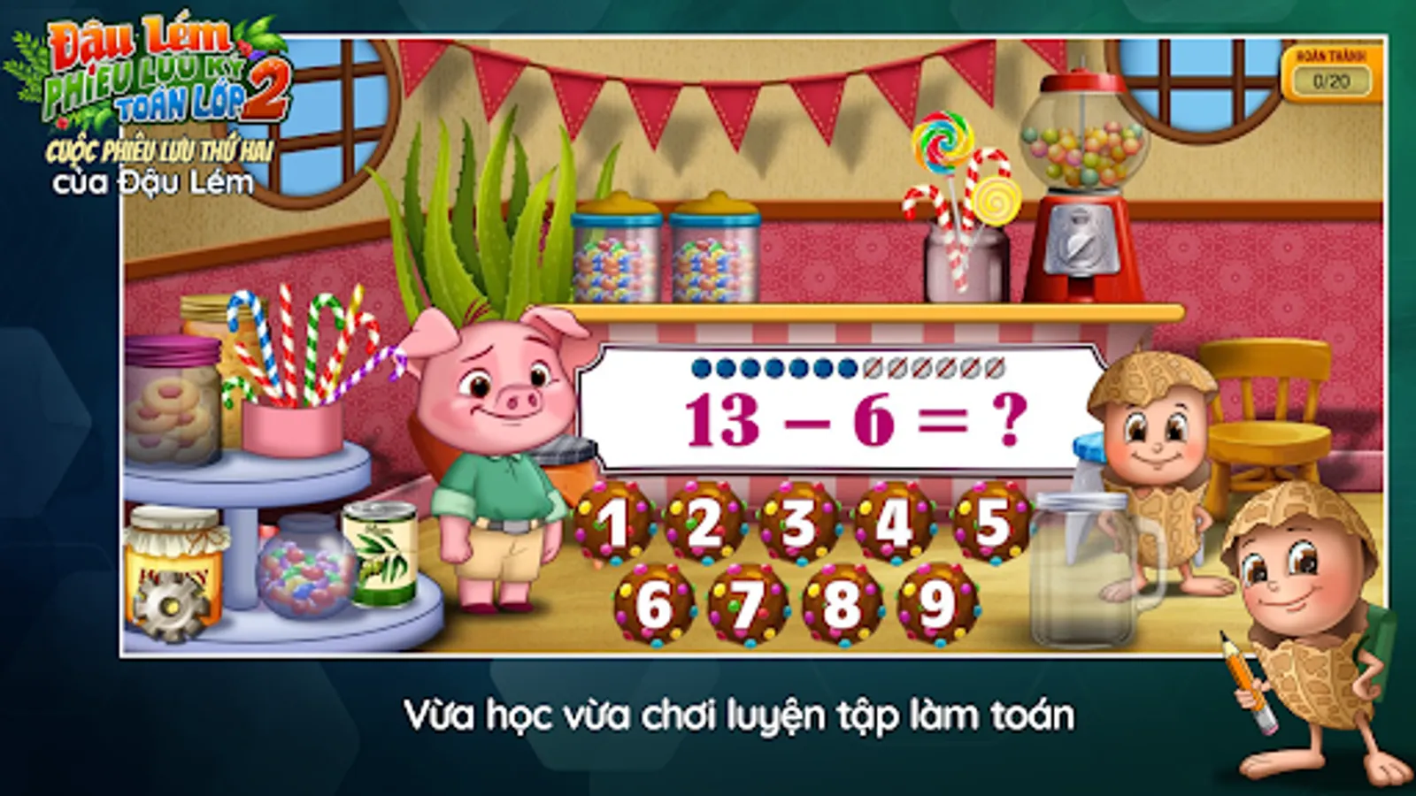 Dau Lem adventure diary is a math learning application that helps children love and be better at Math. Designed as an interactive cartoon, which is very suitable for children in grade 1. Knowledge is absorbed completely naturally as well as stimulates creativity for children.