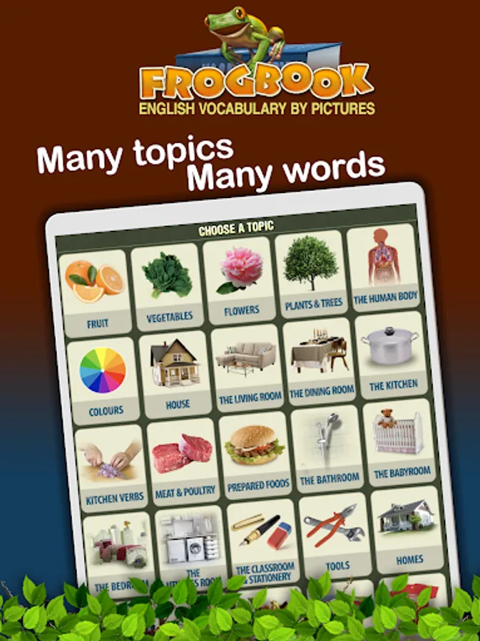 English Vocabulary displayed by pictures in topics helps you quickly learn the English words. It also has many interesting tools to help you remember words.