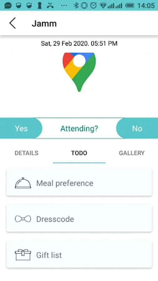 It provides users with different functionalities like DressCode for the event which can be listed and for more