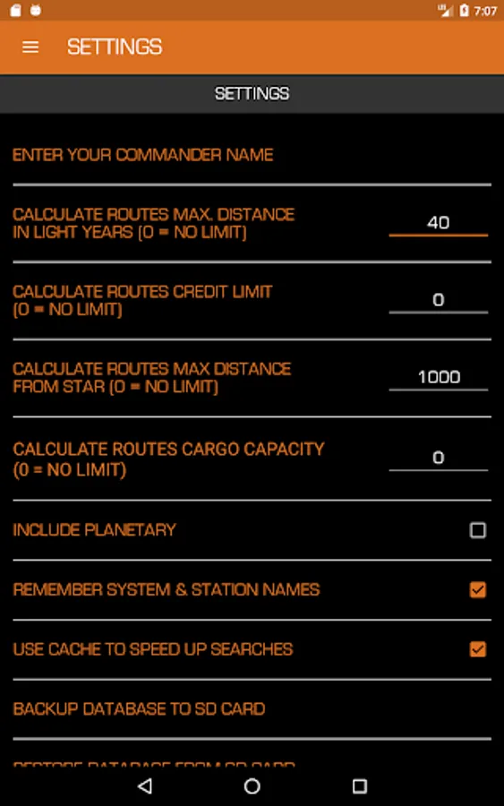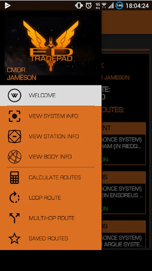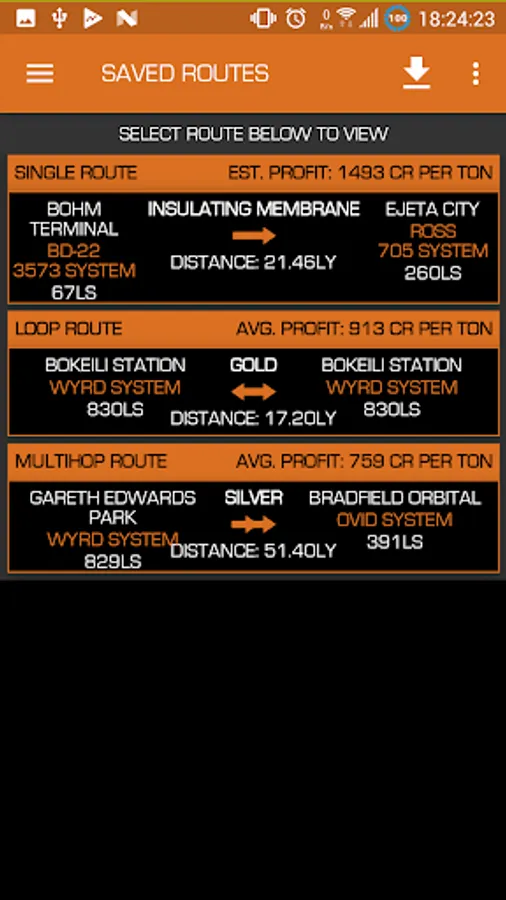 - powerful route calculator shows you which commodities to trade at which station