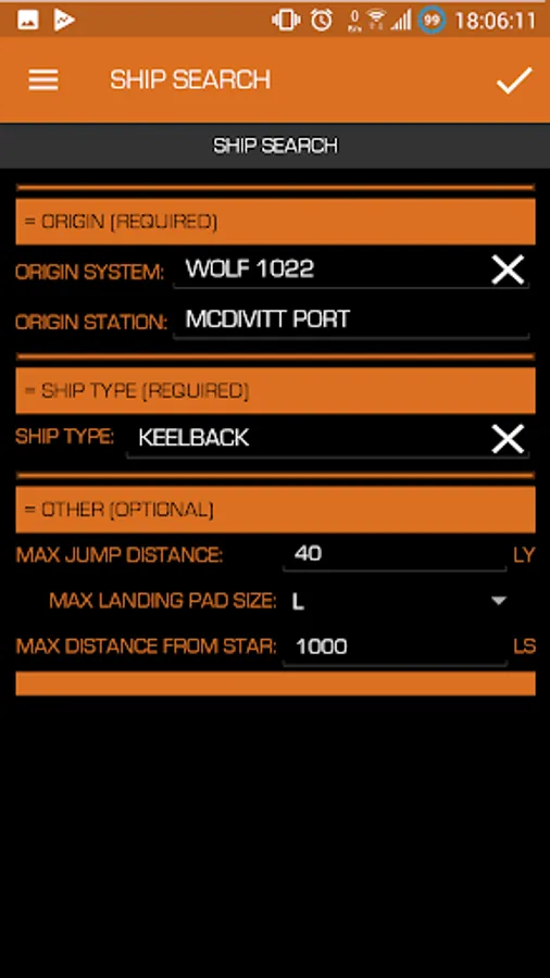 - calculate routes to/from a certain location allows you to specify max. distance, max. landing pad size, max. distance from star etc.