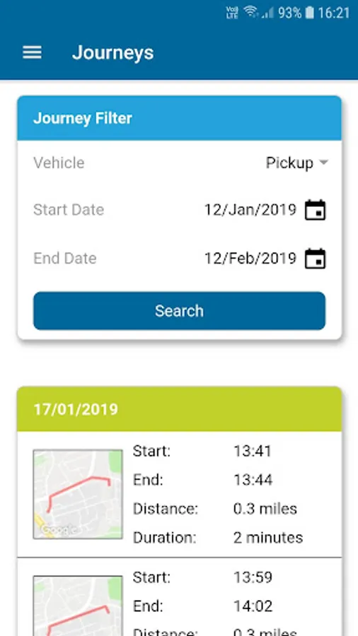 Simply login to view all of your vehicles and their current state. Once a vehicle has been selected you can also view the journeys it has taken for any day.