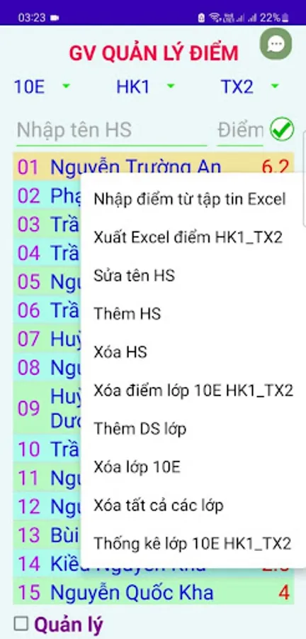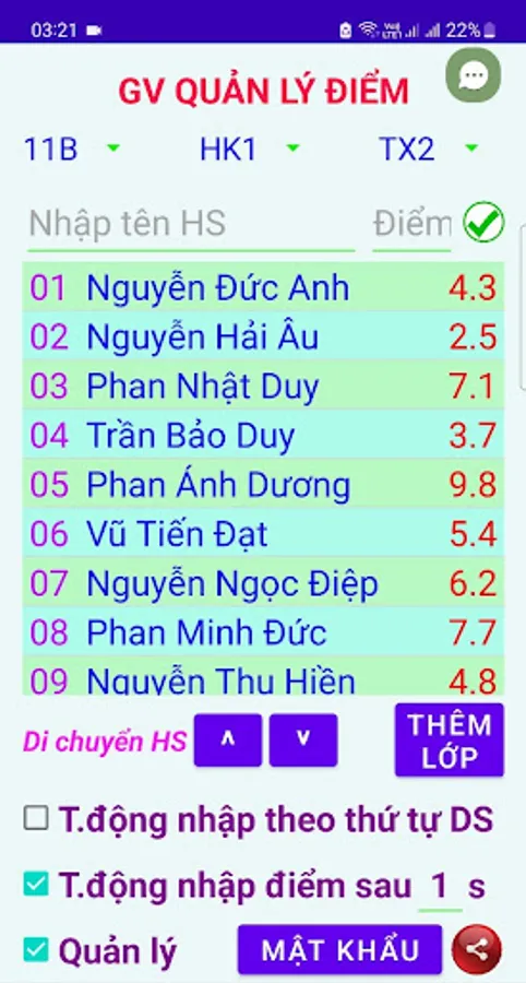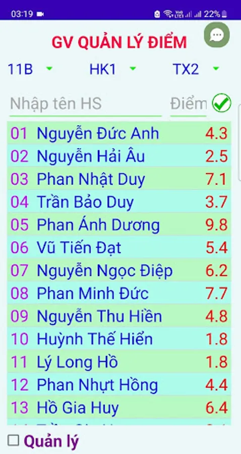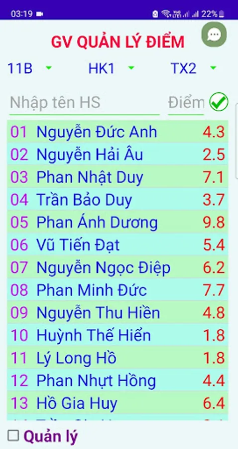 Manually enter HS grades in order or not in class DS order. This function is extremely useful for teachers to enter students' scores after grading.