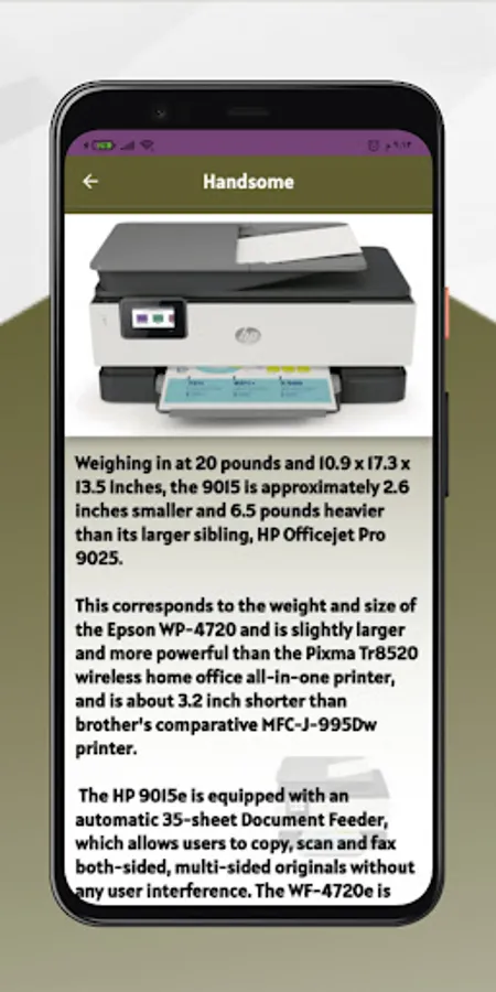The HP OfficeJet Pro 9015e Prienter Printer Manual app contains many printer-specific information and featuresHP OfficeJet Pro 9015e Prienter that you can get clearly and easily.