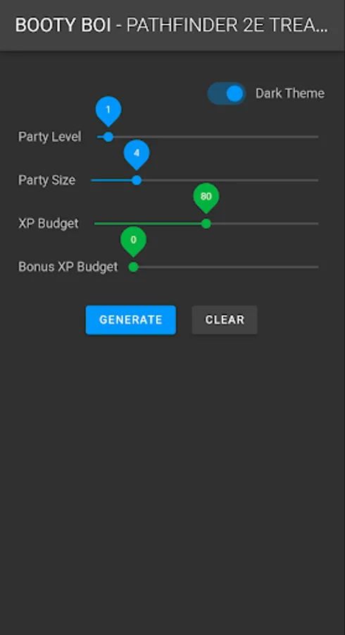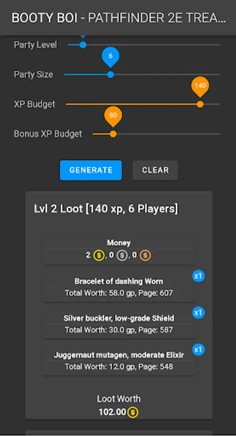 Booty Boi helps DM's generate loot based on the XP budget of the fights. It also helps you manage keeping your party properly geared (according to the PHB). For example, if your party level is 1 and your do 10x 100xp fights. It will generate enough loot to meet the requirements of what your party should be at loot wise.