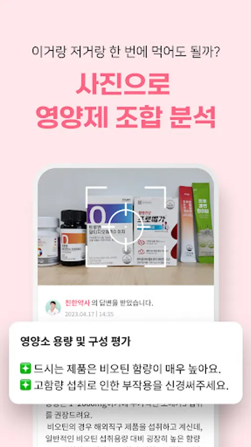 Collect all the nutritional supplements you are currently eating, easily take a picture and request analysis.