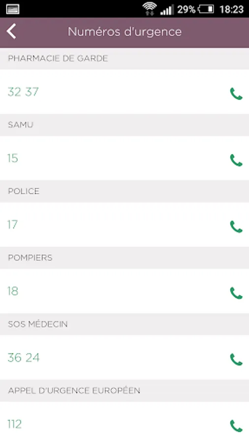 • to consult all emergency numbers (Samu, SOS Doctor ... etc)