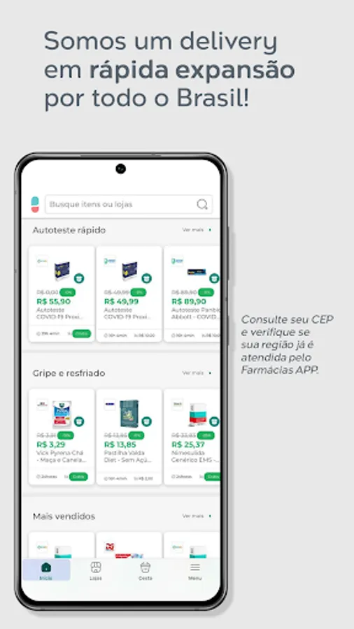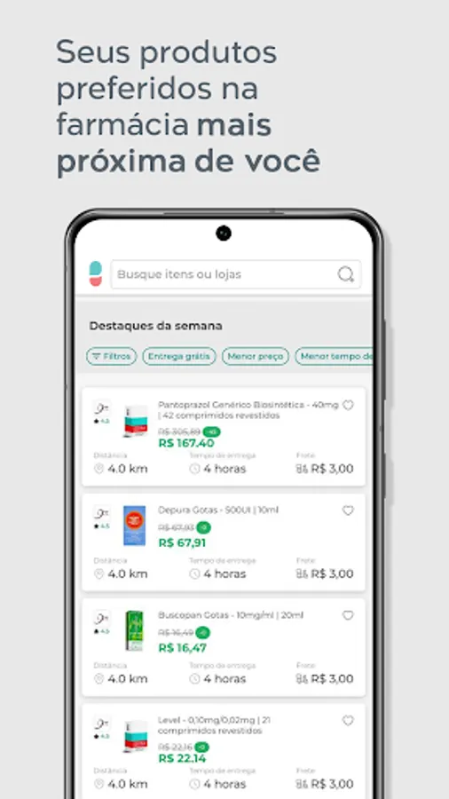 Farmácias APP is an application that brings together pharmacies, drugstores, supplement stores, perfumery, makeup, hospital and compounding products.