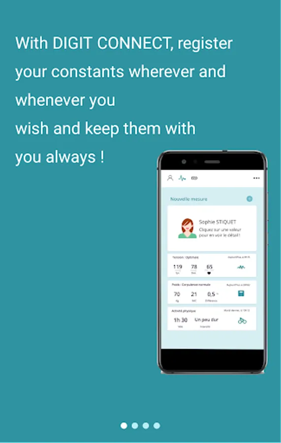 Digit CONNECT is an application that allows you to manually and simply manage your blood pressure, weight and physical activity.