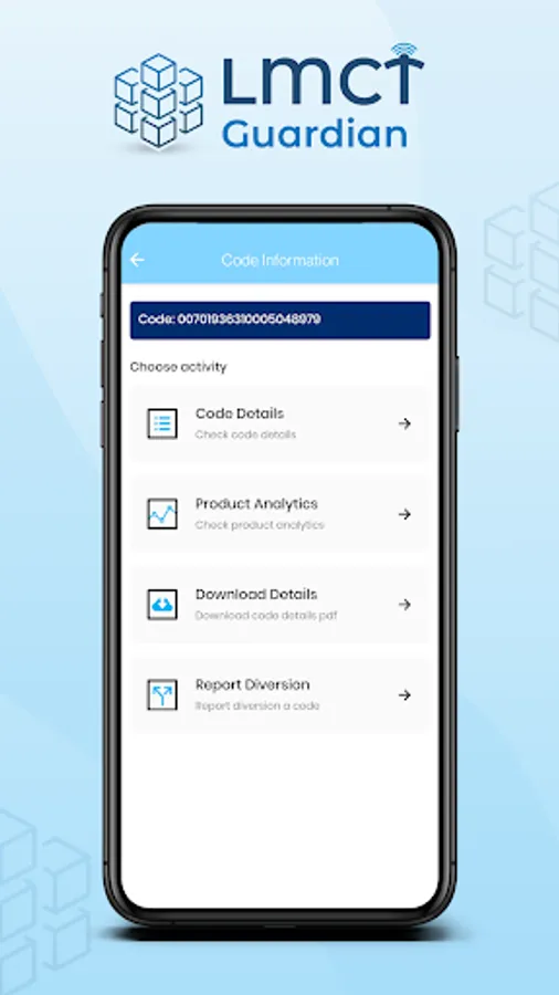 The LMCT Guardian is a customized supply-chain consignment tracking app for Distribution / LCs / Field Officers / Sales teams. It includes a product tracking dashboard and analytics to give you entire information about a code. With this application, the user can report a diversion of the product as well. Only authorised users can use this application. This application is powered by PharmaSecure.