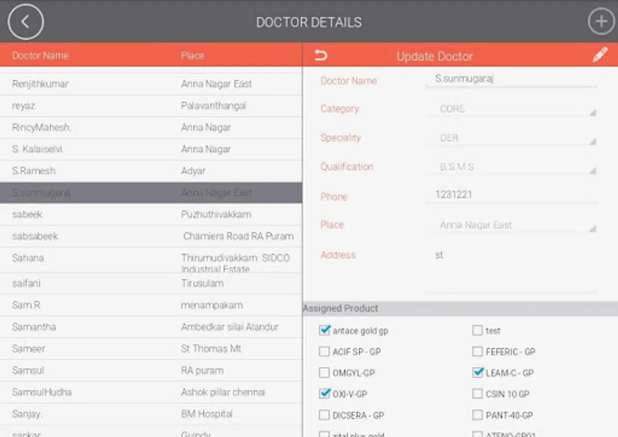 13. Admin can see the place, time and the products detailed to the doctors
