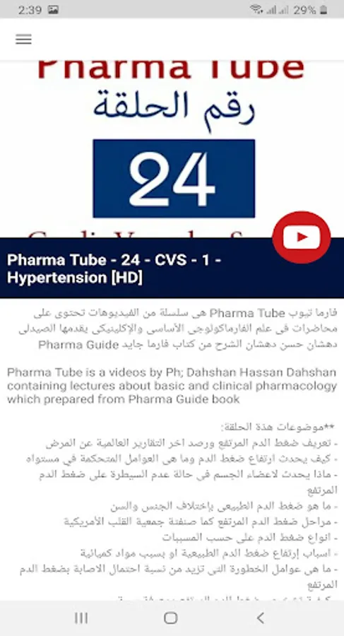 * Pharma Tube containing lectures about basic and clinical pharmacology with pharmacotherapy, which are prepared from Pharma Guide book