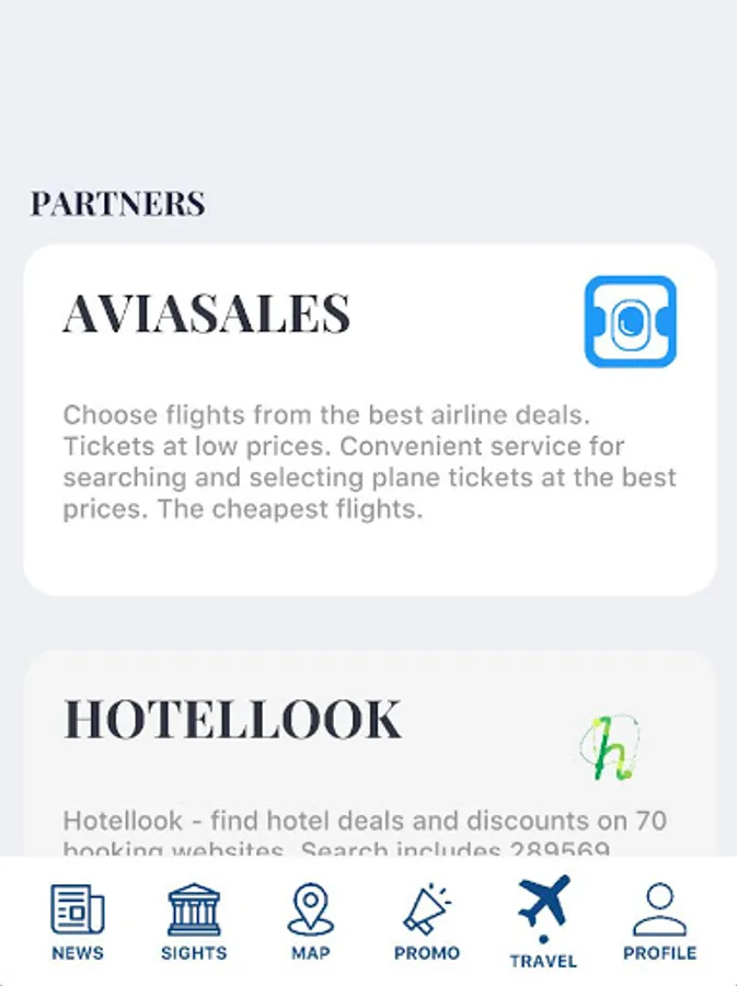 Travel planning. Book flights and hotels directly in the app, read useful information and reviews from other travelers