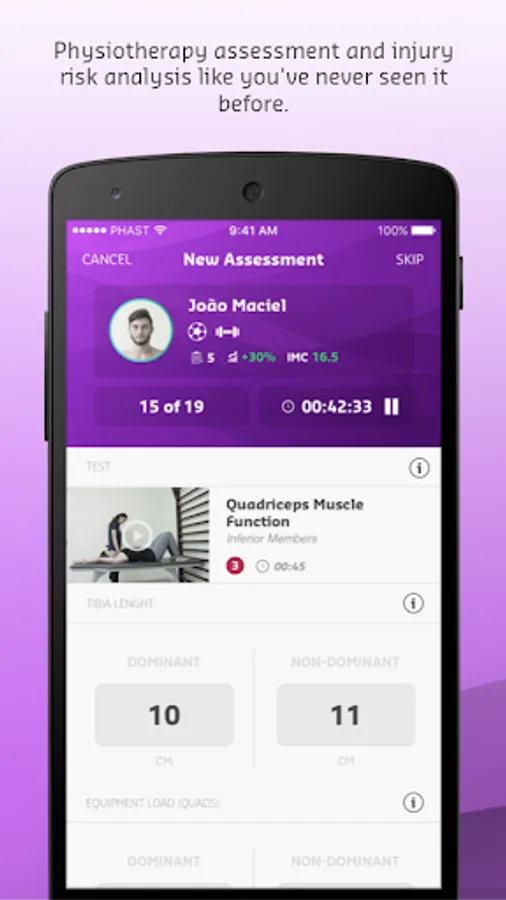 Phast is the first integrated platform that guides the physiotherapist through tests and assessments, helping him organize the clinical reasoning, to identify injury risk in physically active people and athletes.