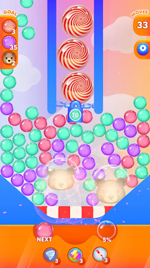 Engage in awe-inspiring chain explosions as you blast through levels filled with vibrant bubbles, each waiting to be popped with precision. Strategically shoot balls, carefully planning your moves to solve challenging goals and open the coveted capsule balls containing fantastic toys.