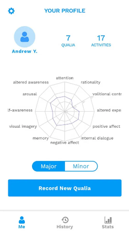 A tracking app that allows you to quantify conscious experiences on a number of different qualia axes. See your experience fingerprint for specific events and compare across events and time.