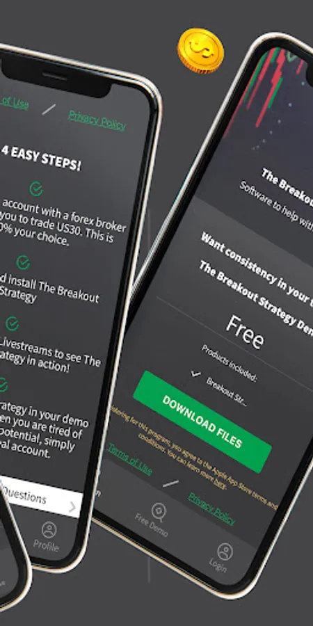 Download the MoneyMint App to get the instructions and education needed to demo The Breakout Strategy, an algo trading assistant. The Breakout Strategy helps bring consistency to your trading. Learn about the strategy and other information important information about the markets. Inside the app, you will find the live demo trading schedule to see it in action for yourself!