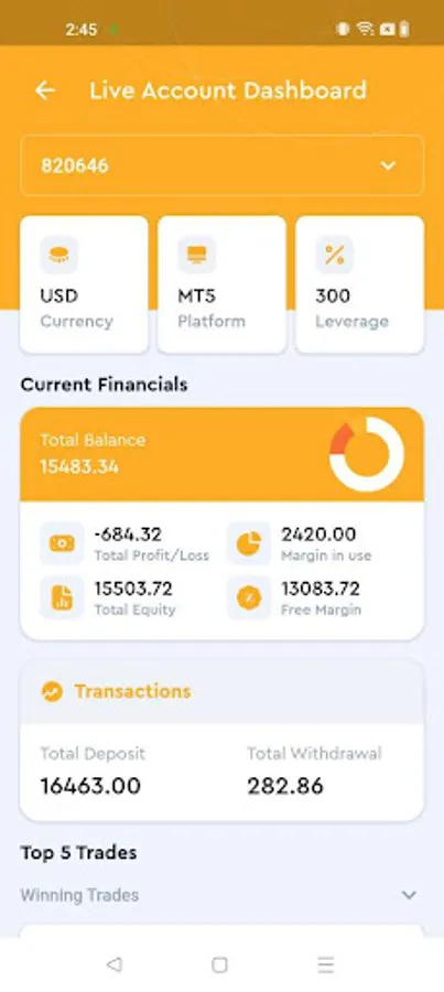 - Deposit and withdraw your money for trading with Cloud Forex CRM app.