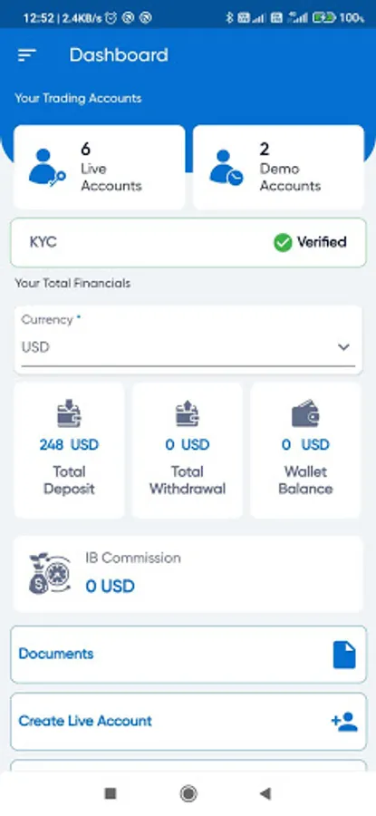 This mobile app contains very basic but powerful features like Account opening, KYC upload, Deposit in trading account, Withdrawal from trading account, Review IB commission report, E-wallet to trading account fund transfer, Trading account to E-wallet fund transfer, and many more features.