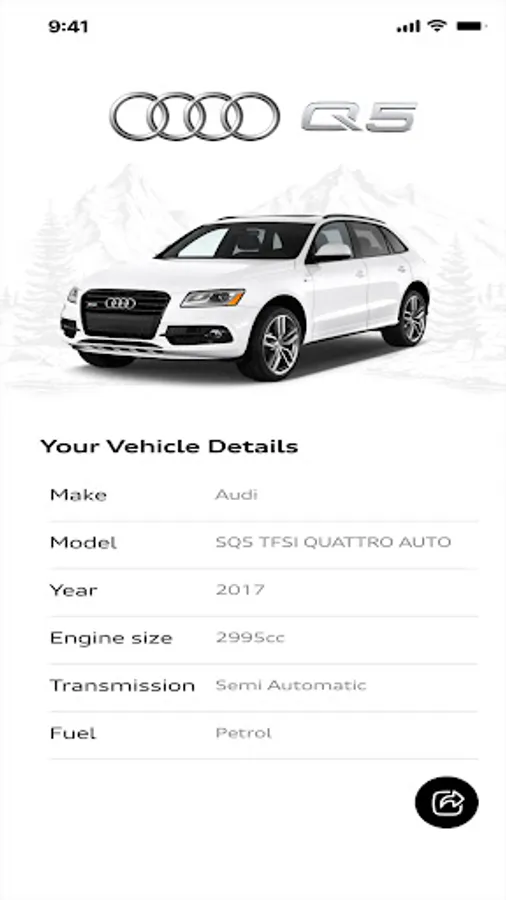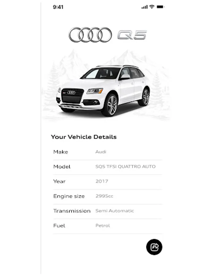 My Audi Q5 enables you to get all the details of an Audi Q5 by simply putting its registration number.