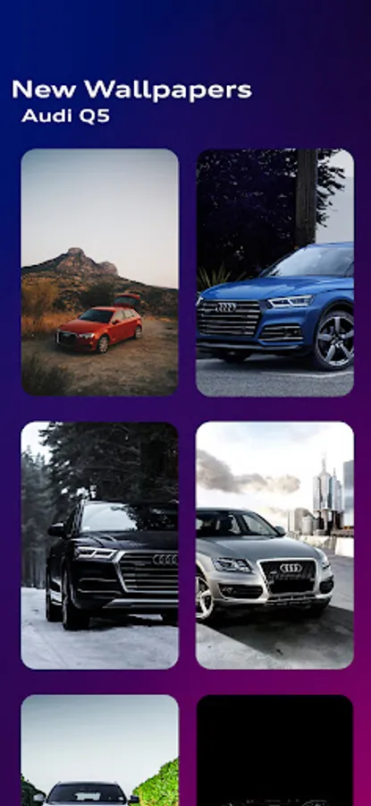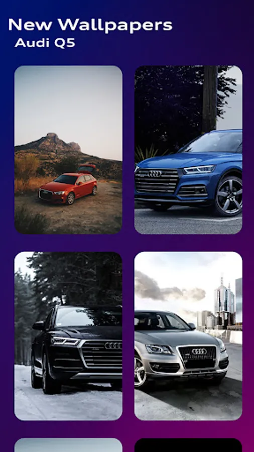 Download the Audi Q5 Wallpapers app to download Q5 wallpapers. Many colors and models are available. You can save directly to your Gallery. Use as wallpapers, social media updates and any other purposes you like. Images are updated regularly.