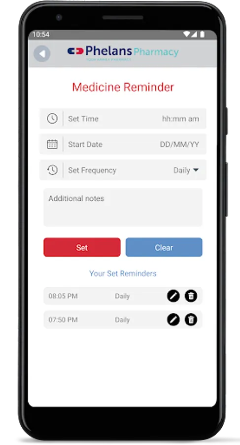 The Phelans Pharmacy app allows patients to pre-order their prescription medication, instead of waiting while it is dispensed. To use the App, you simply use your phone’s camera to send an image of your prescription, nominating which Phelans Pharmacy you wish to pick your prescription up from and then set a collection time and date. When you go to the pharmacy to pick up your prescription, simply take your paper prescription up to the counter and exchange it, without the wait time for your prescription. You can also set daily medication reminders to reorder your prescription and book services such as your flu vaccine and 24-hour blood monitoring.
