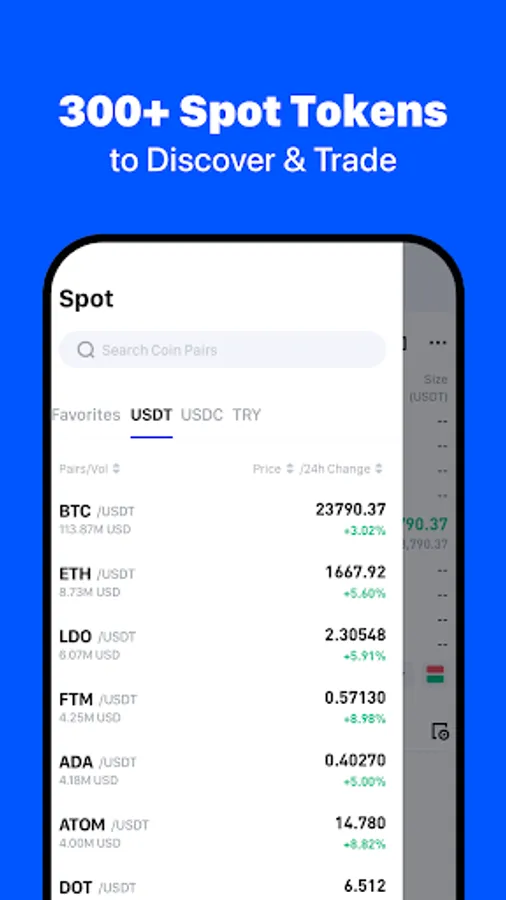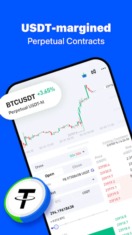 2. Derivatives (Perpetual Contract) trading with up to 100x leverage and settled in USDT, USD, BTC, or ETH.