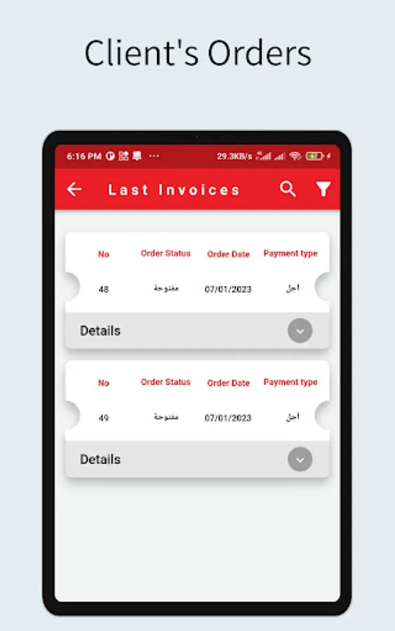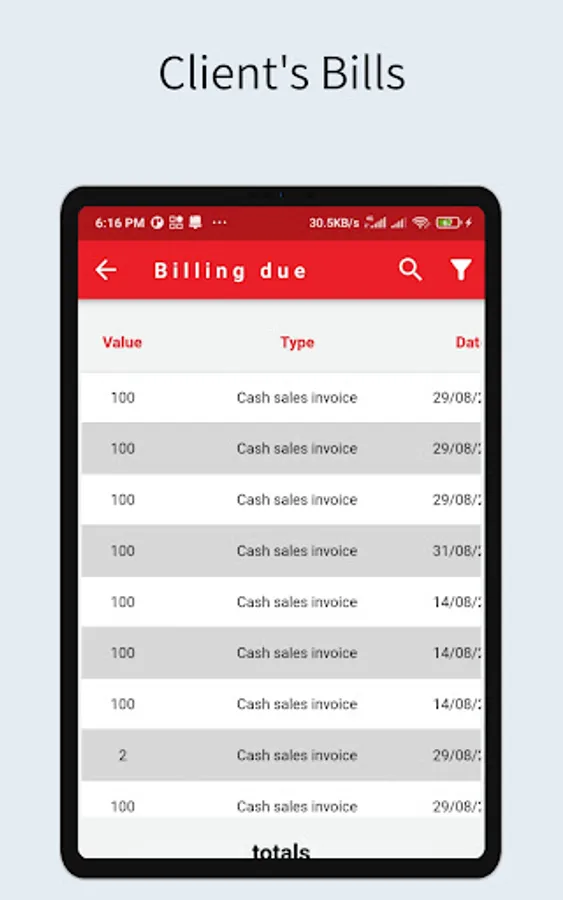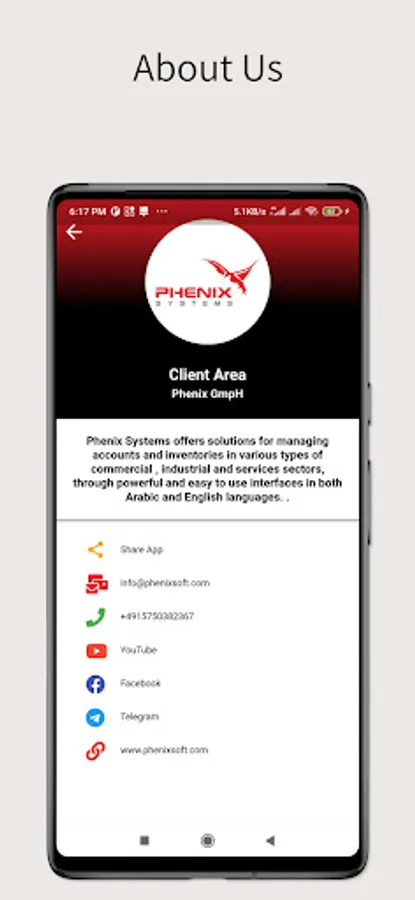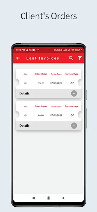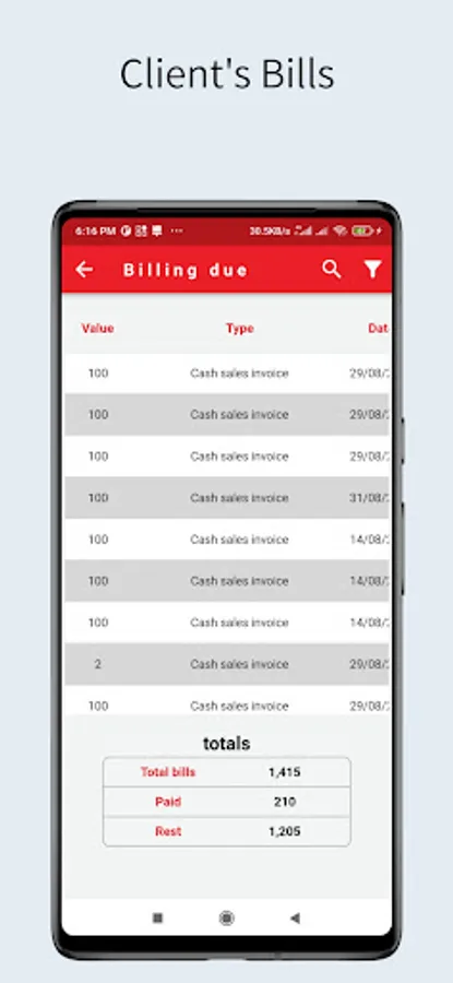 The app enables the client to know balance and points and browse reports through the account statement report and also know each invoice balance by comparing the original value and its payments.