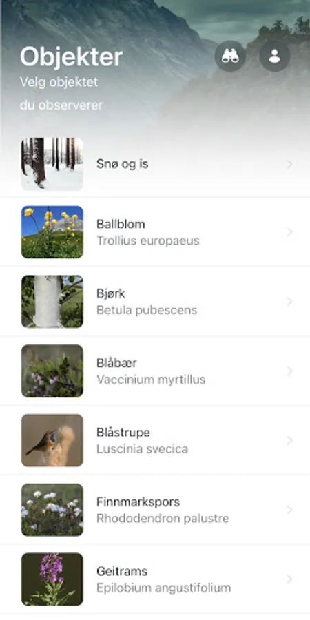 The Phenology app allows you to easily learn about the species' different phenophases and how they change throughout the year in a fun and intuitive way. Here you can log your observations and participate in the project Phenology on the North Calotte.