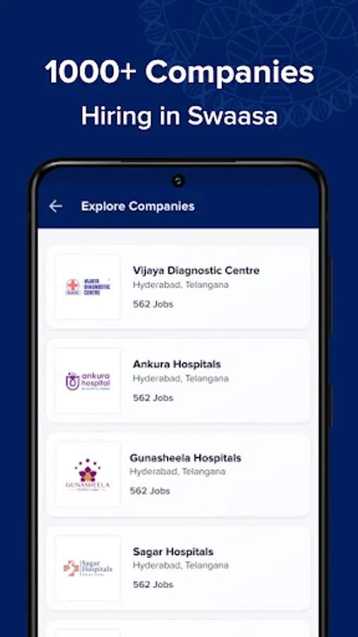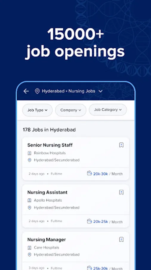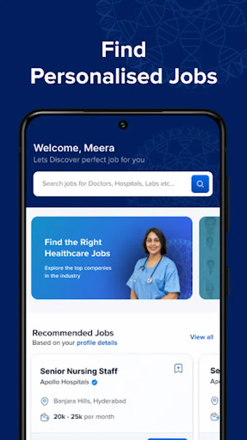 Community of 1 Million+ Healthcare Professionals, 400+ Medical Colleges, and 1200+ Healthcare Employers (Hospital, Pharmacy Networks, Home Care Services, Pharma Companies, Diagnostic Networks, and more) with 11000+ Jobs and 100+ Career Coaches to Guide Freshers and Experienced.