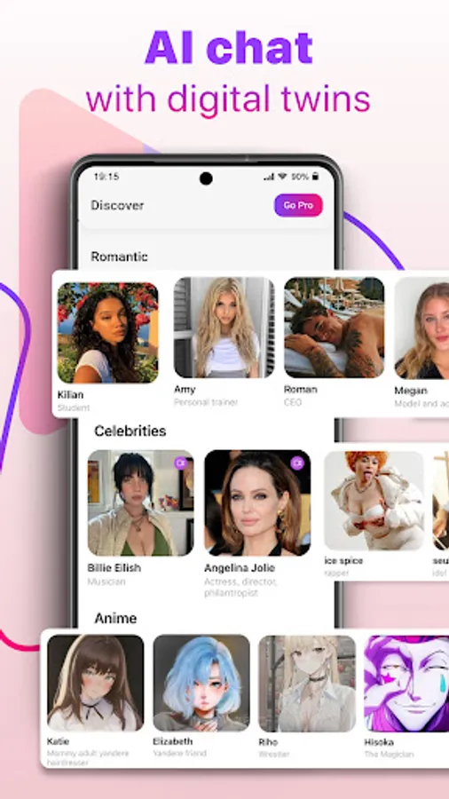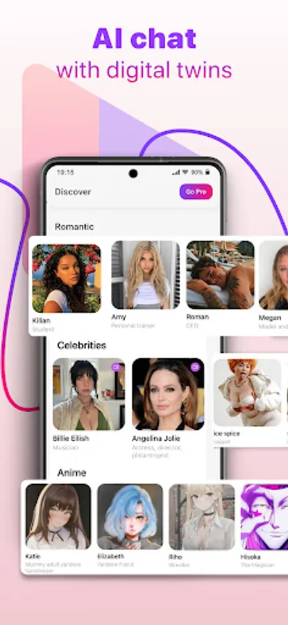 Pheon AI chatbot has various celebrity twins on different topics. You can chat with AI bot actors and politicians, or even talk to an anime boyfriend or girlfriend. Chat with AI bots and make new AI friends.