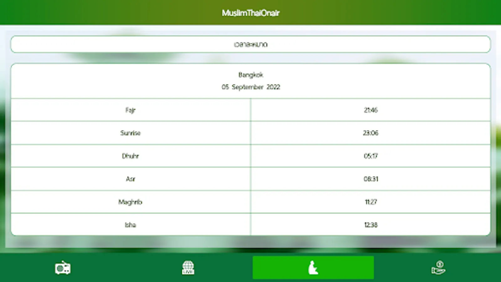 - Tells all 5 prayer times according to your position
