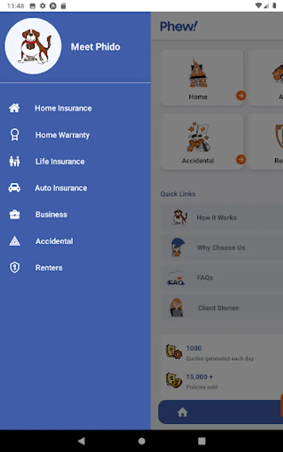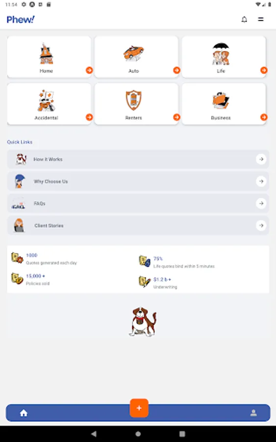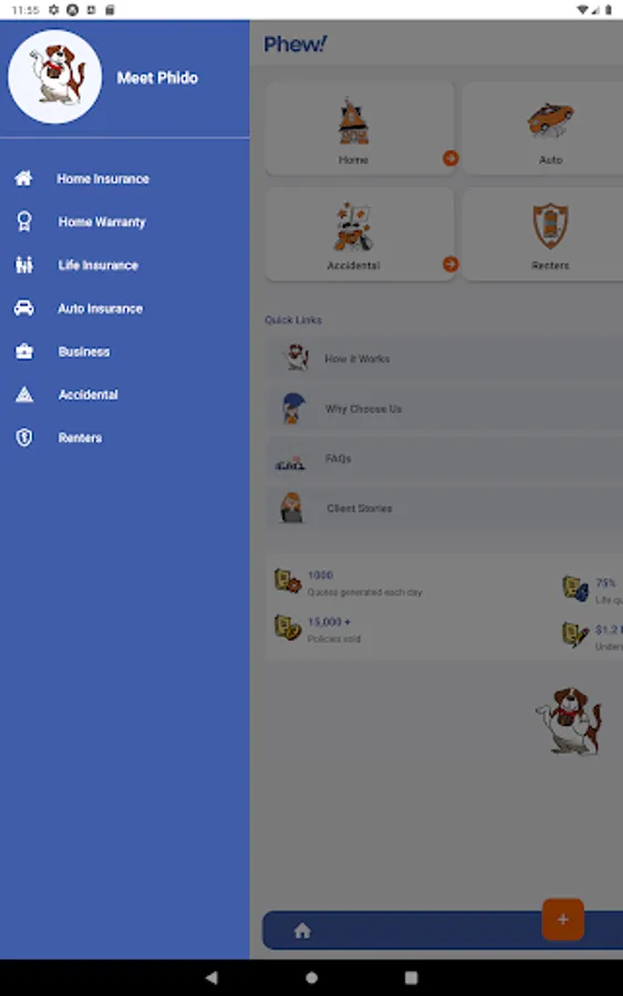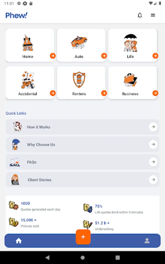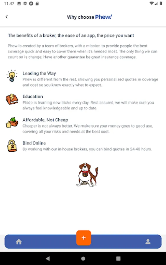 Phew! is an online broker. We shop out your policies in the market and bring our knowledge to advise you. We bring access to more insurance companies than the typical consumer can find on their own, which generally means better rates for better coverage.
