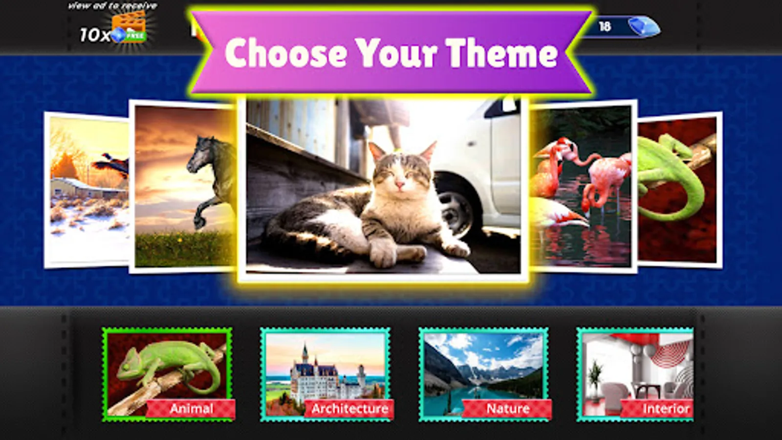 🎨 Customizable Gameplay: Tailor your puzzle-solving experience by adjusting the puzzle piece count and choosing from a variety of background themes.