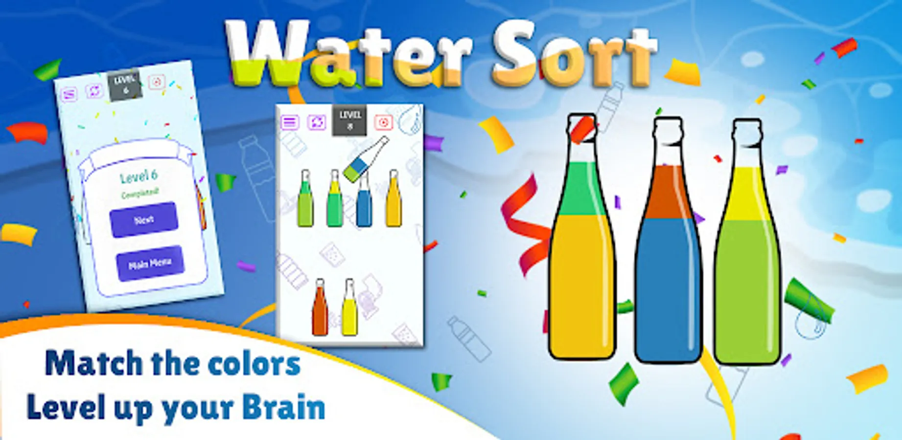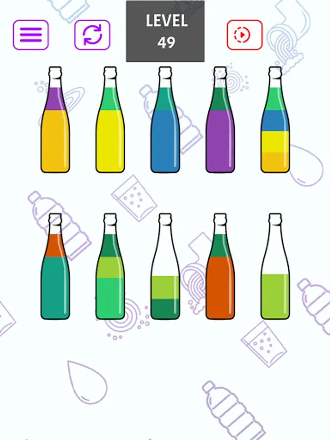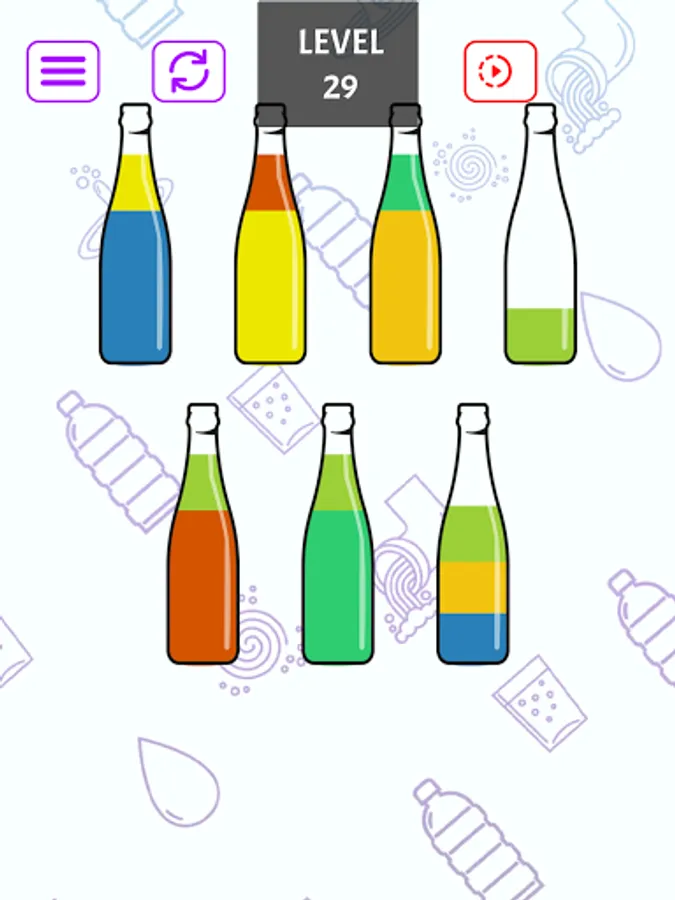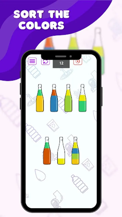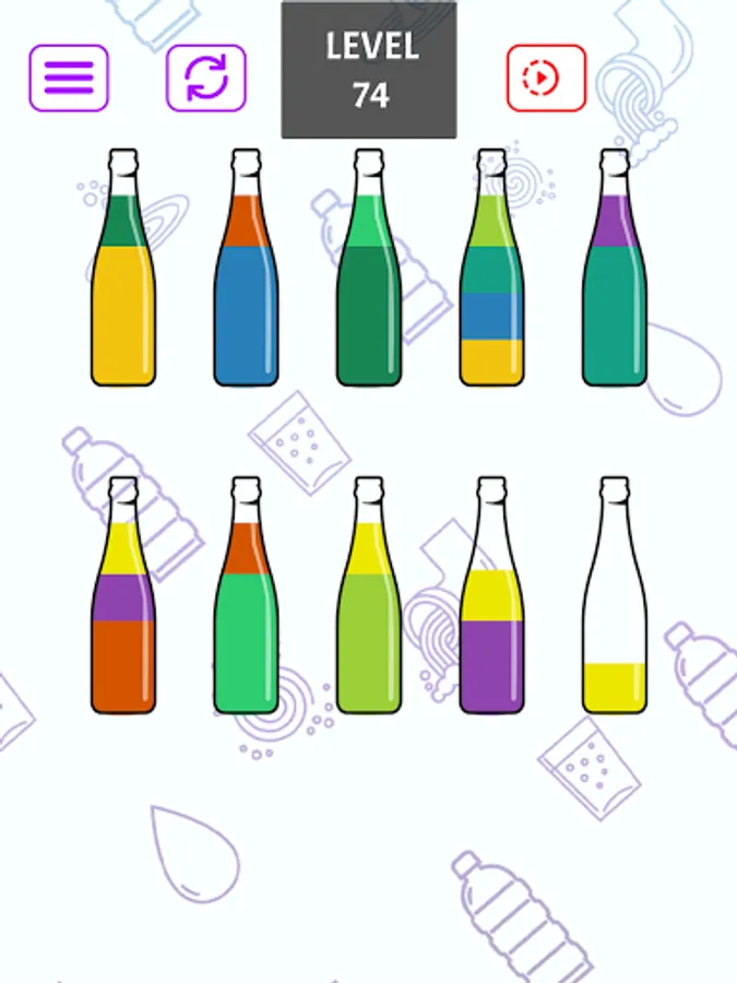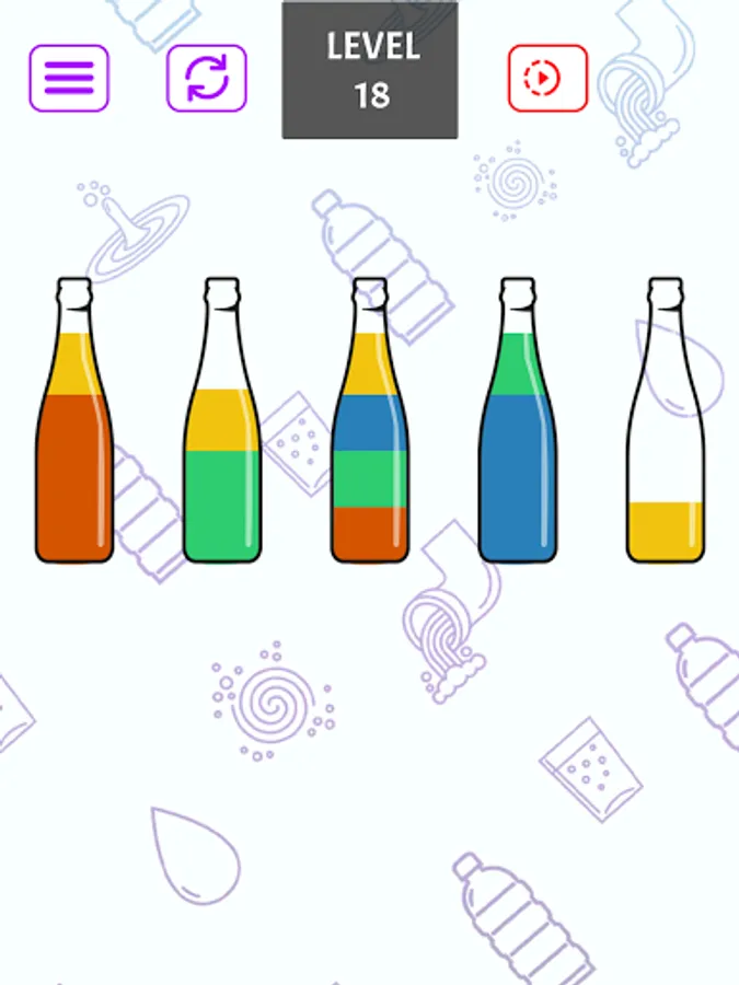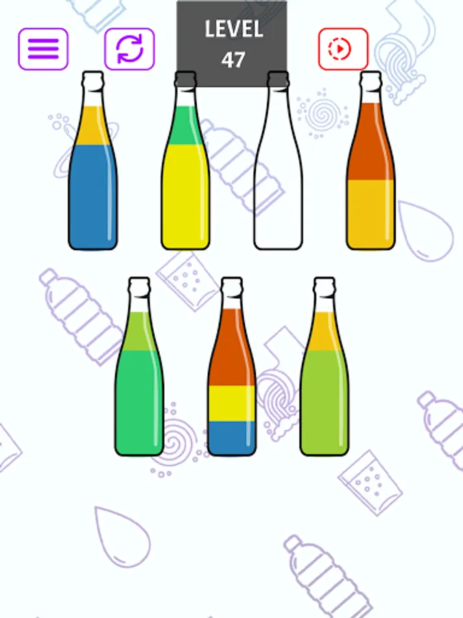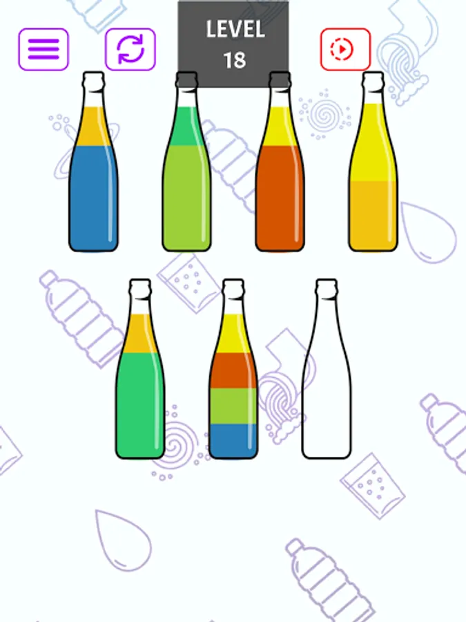 Conquer each level by strategically sorting colors into different bottles. Overcome intricate color blends and earn your victory by achieving a uniform hue in every bottle. Show your brilliance in color coordination!