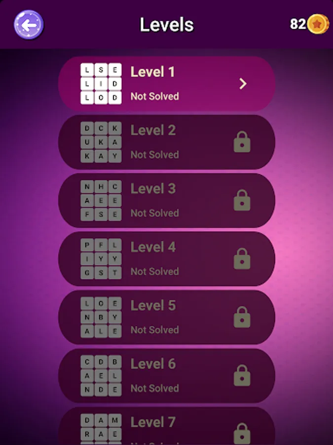 🌟 Progressive Complexity: Begin with a set of 3 letters, crafting initial words with ease. As you advance, the complexity escalates, introducing additional letters and intricate intersections. Adapt your strategy and linguistic skills to overcome the escalating challenges.