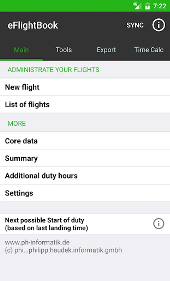 In this professional version of eFlightBook you can synchronize all data with your SQL Server in your office (with additional phi...Software in your back office).