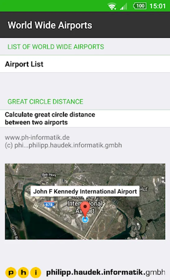 Users can also select two airports and calculate the great circle distance between the selected airports and show it on the map.