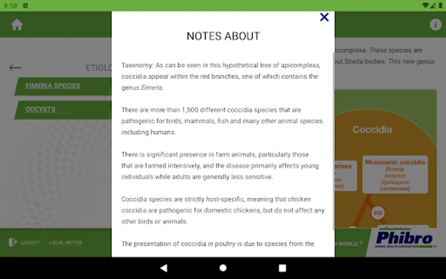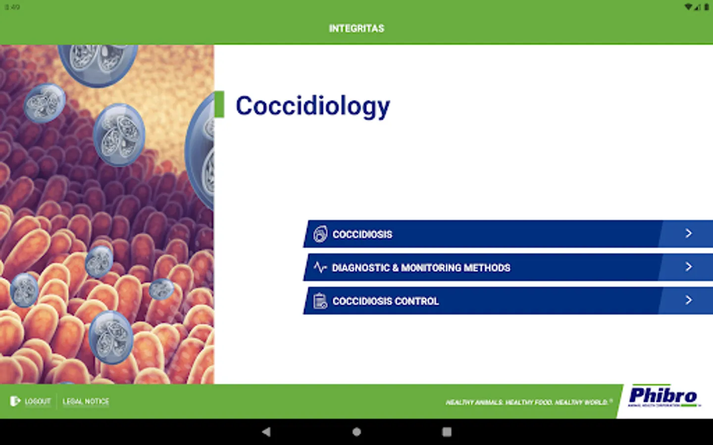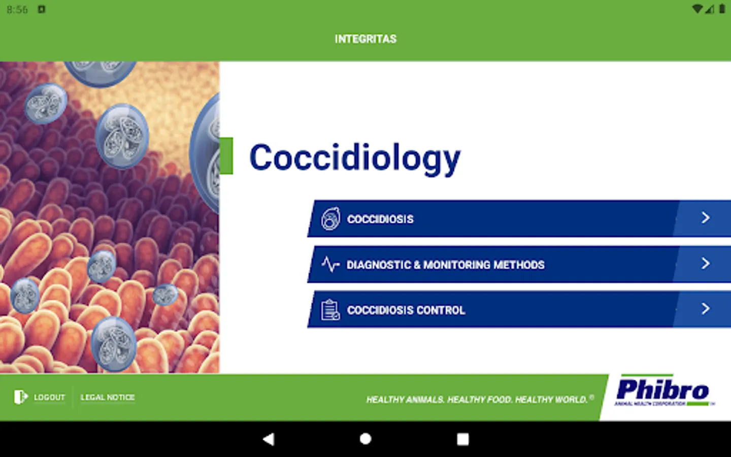 The Integritas Coccidiology App helps the user on learning the several aspects of managing coccidiosis in poultry production.