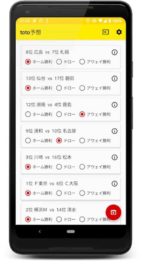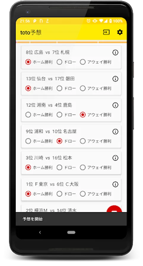 You can check past match results and news of each team by clicking the match card. Please use it for your prediction.