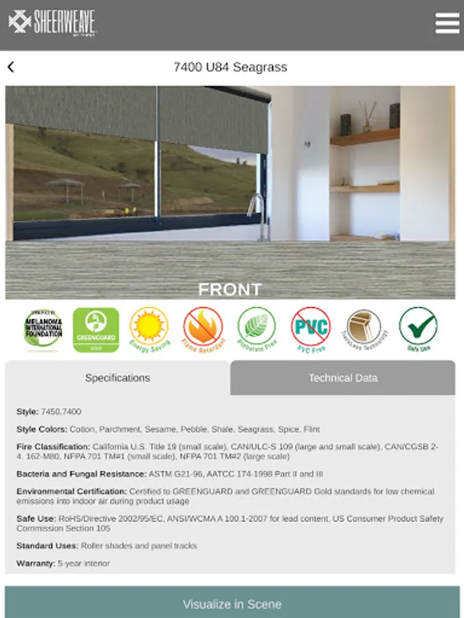 The new SheerWeave® by Phifer for Android provides instant access to the entire SheerWeave® brand portfolio of solar shading fabrics. View all 35 styles, colors, openness factors, technical data and more with the click of a button.
