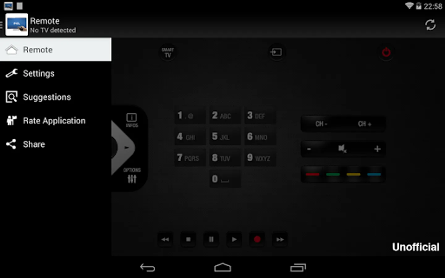 "Remote for Philips TV" is a virtual remote control that allows you to connect your TV from your smartphone . The application is completely free and can replace your standard remote control of your TV .