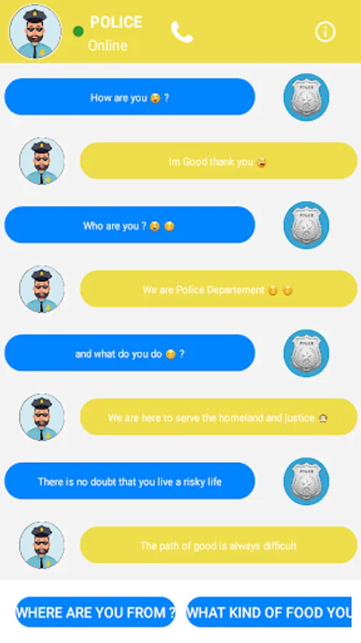 Download Chat with police app, enjoy the prank calls and messages from Police. If you like it then, must share it with your friends and family and let us your feedback. If you have any suggestions to improve this police chatting and calling and then please let us know.