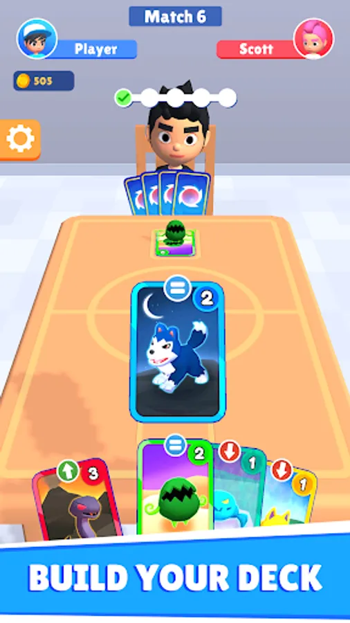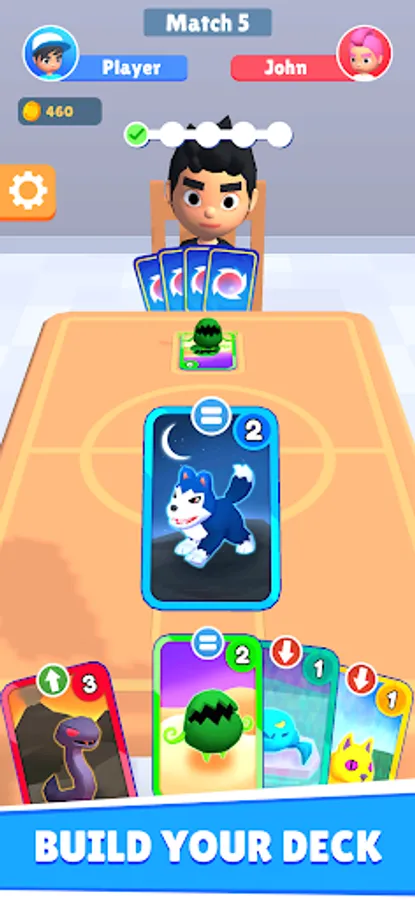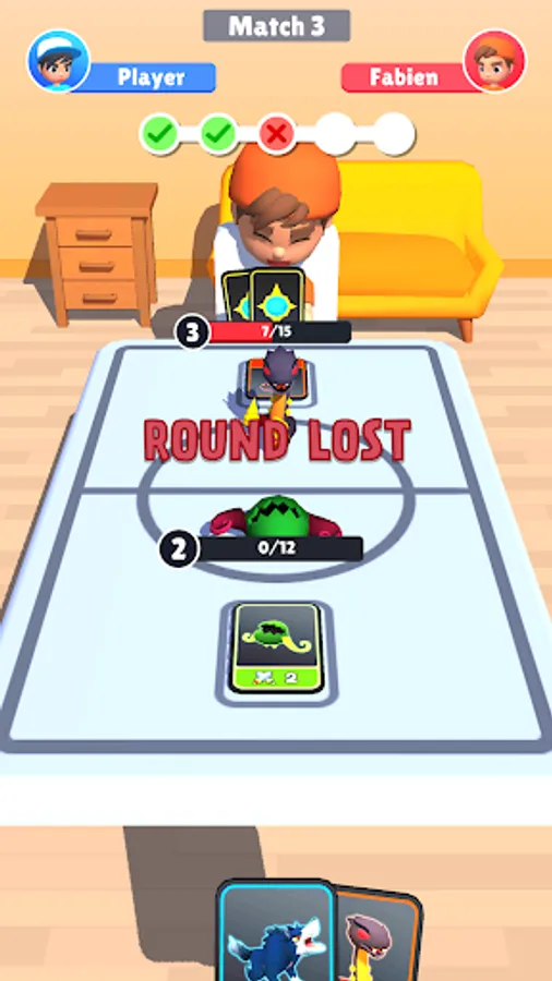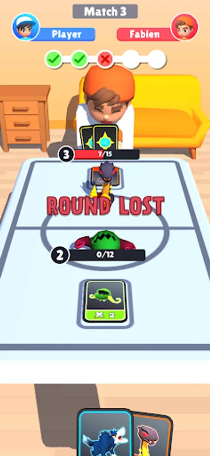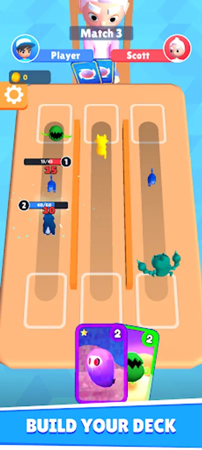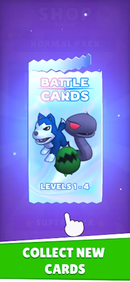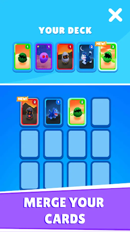Merge cards to evolve your monsters and beat opponents to gain more cards!