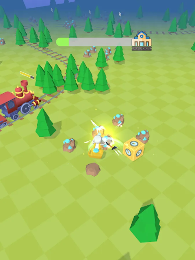 Go on an adventure with your train! Collect wood to give it fuel, fix the railroad with metal, collect gems for money and fight bandits trying to steal from your train!