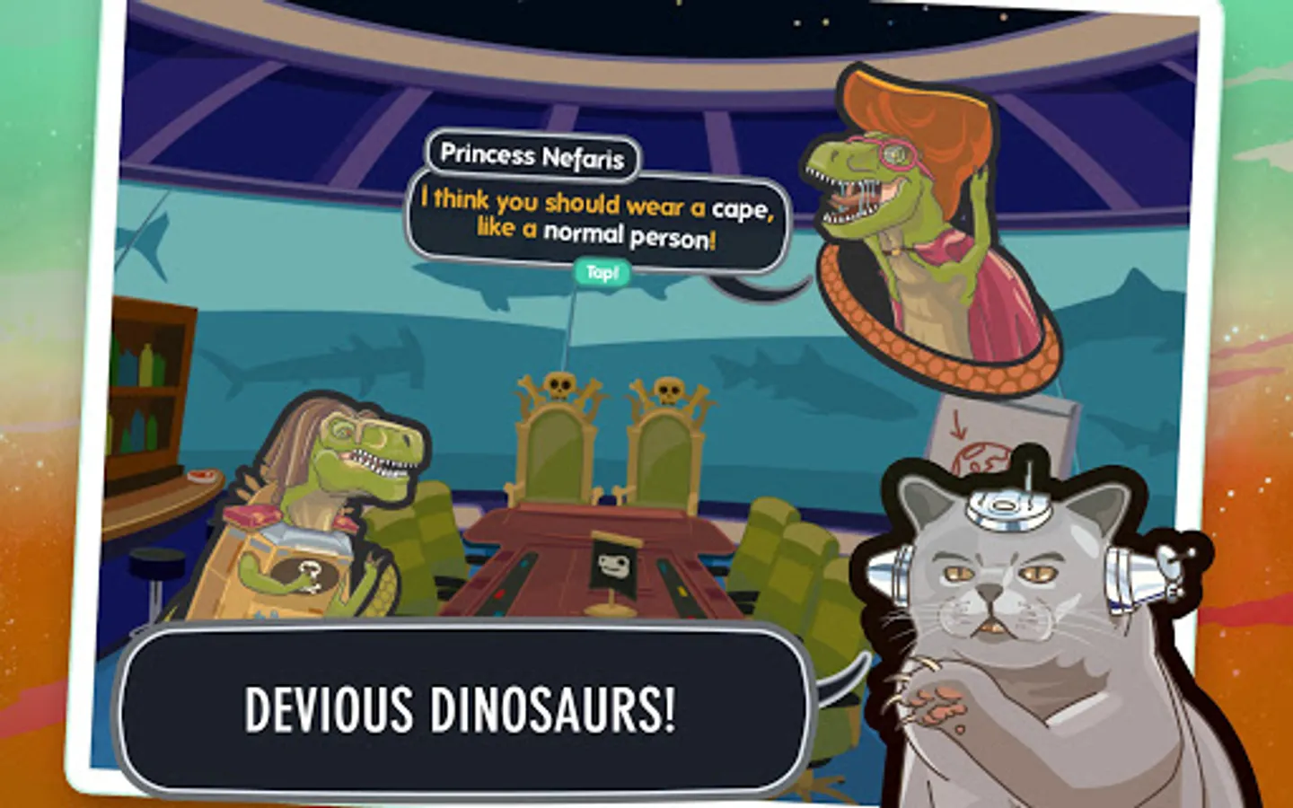From nefarious dino royalty to the obligatory smart-alec kid and her dog, "Ace Ferrara And The Dino Menace" is chock-full of 80s cartoon tropes. Over 50 scripted dialogue scenes and briefings advance the story between missions.