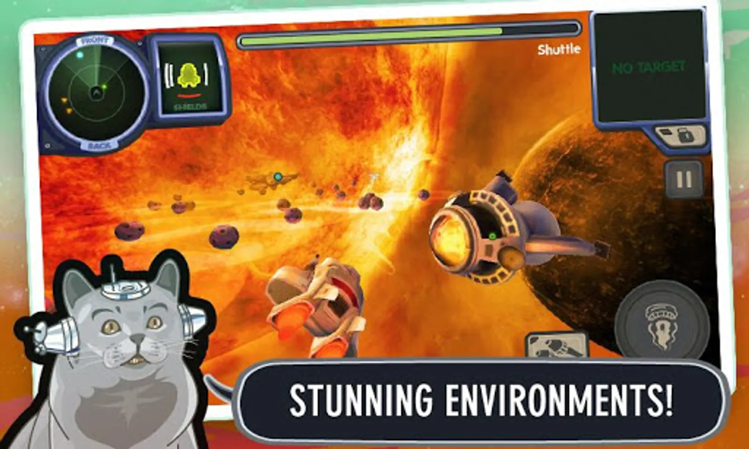 Rocket through the upper atmosphere of a gas giant, hyperjump into a stormy space nebula, or take out a dinosaur installation in close orbit around a red supergiant.