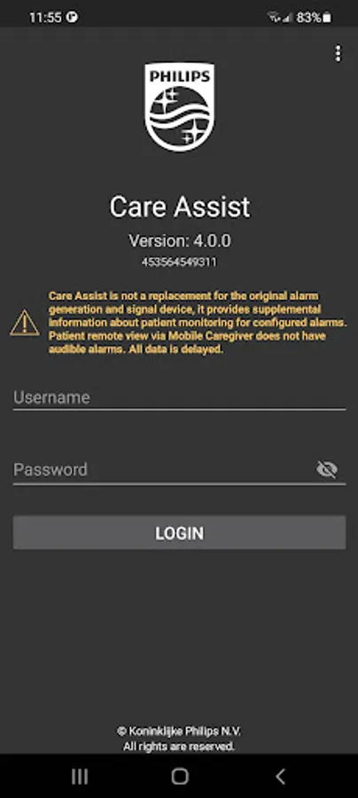 The Care Assist mobile app is intended to be used by trained clinicians for review purposes only. Receipt of any alarm messages or events sent by external devices is not confirmed and delivery to the end device is not guaranteed.