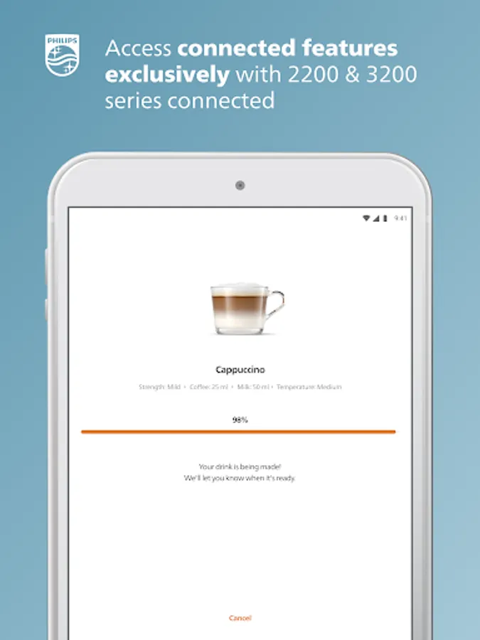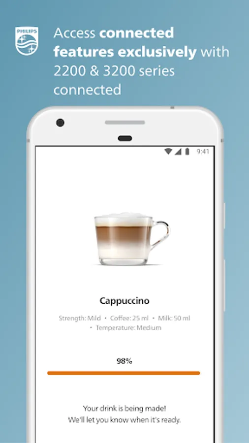 Two Philips espresso machines are connected to the Coffee+ app for even more convenience. Make your personalized coffee instantly and remotely. Control your machine in real time anywhere in your home. Receive maintenance updates directly in your app.