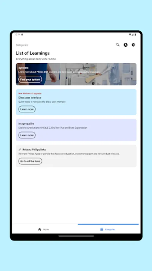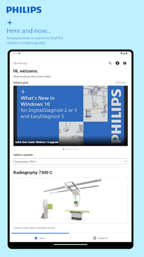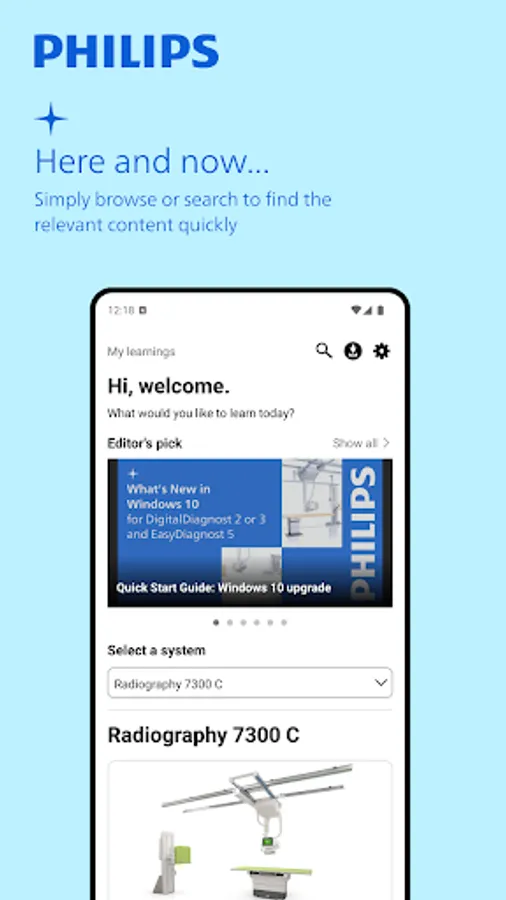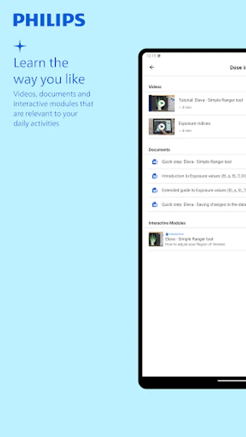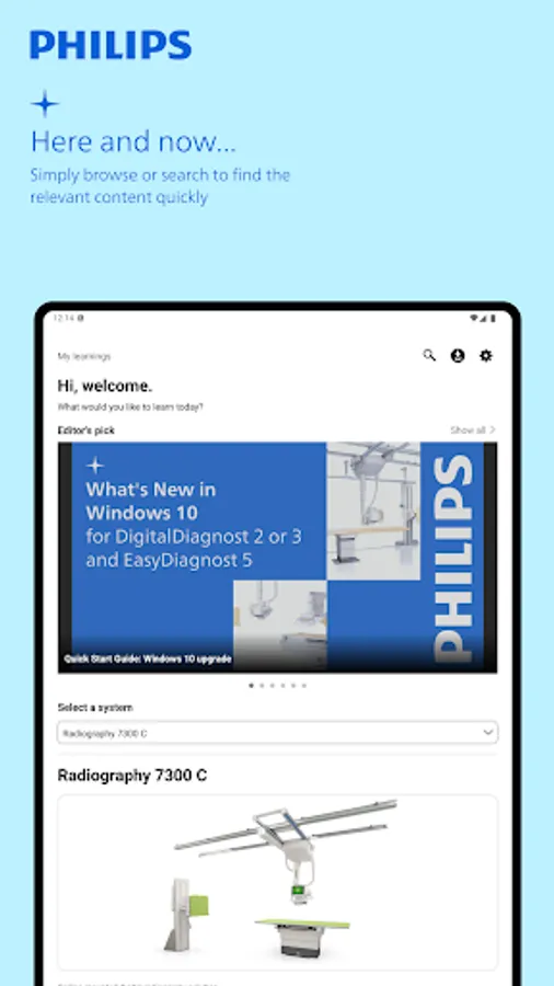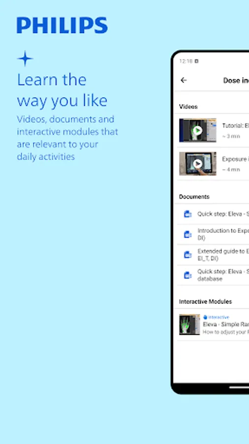 Welcome to the Philips DXR Learning App, where you can learn more about Philips DXR solutions. This app provides quick access to videos, documents, interactive modules, and links to support you in using DXR systems and tools.